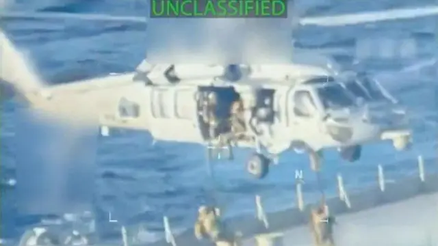 ونشرت وزيرة الأمن الداخلي الأمريكية كريستي نويم - بصفتها الجهة المشرفة على خفر السواحل- مقطع فيديو مدته سبع دقائق للعملية عبر منصة "إكس".