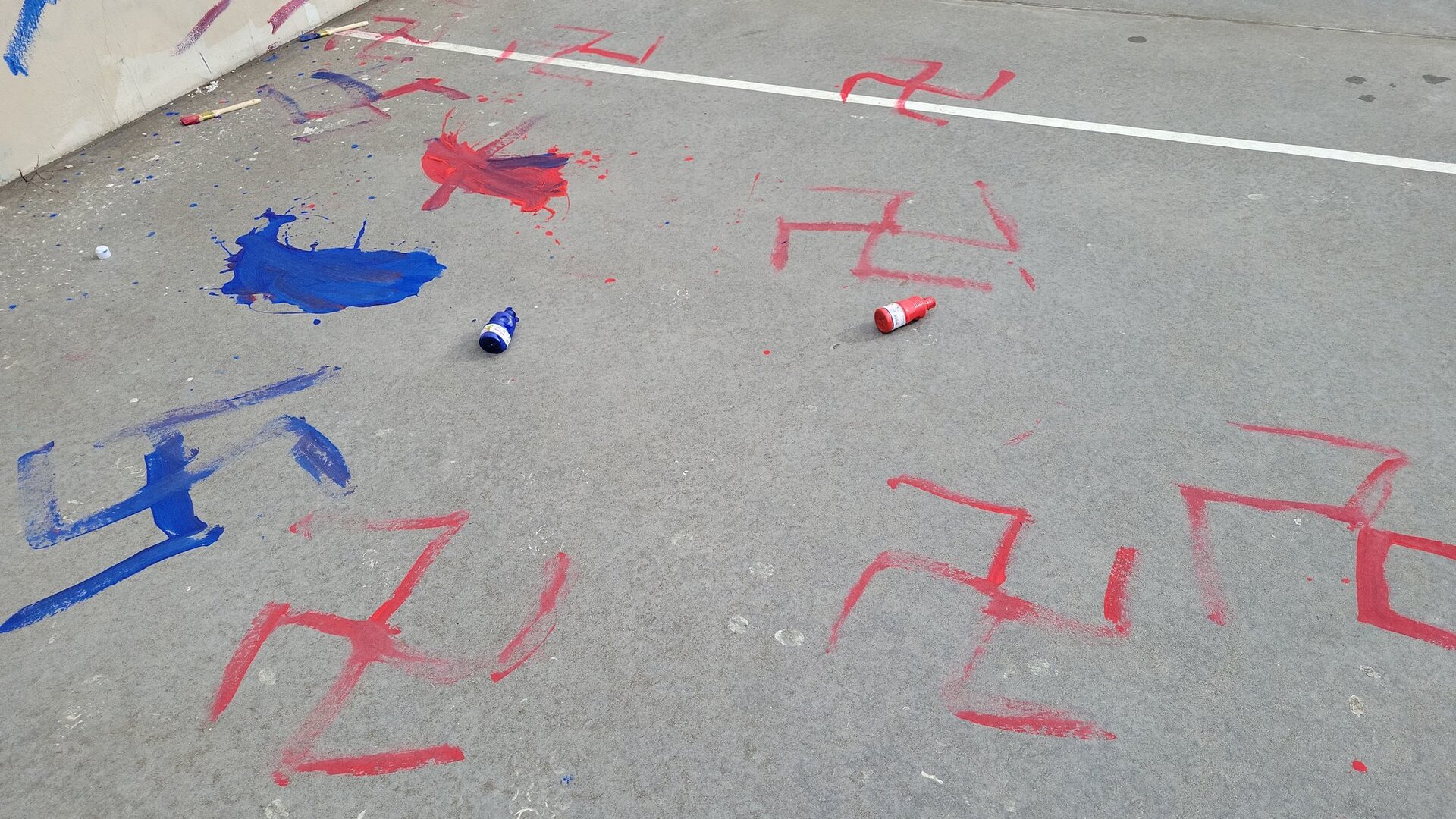 في وقت سابق من هذا الأسبوع، عثر الضباط على حوالي 16 صليبًا معقوفًا مرسومة على الزلاقات والجدران والأرض.