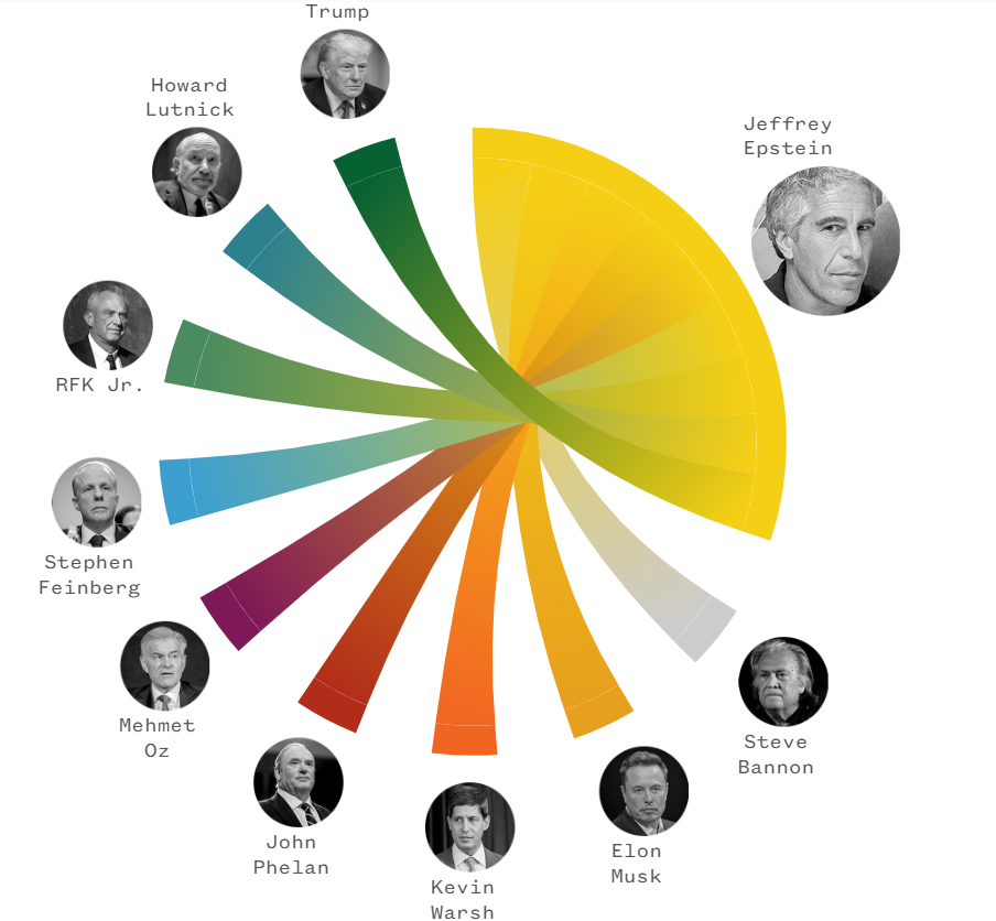 وفيما يلي نظرة تلقى على صلات مسؤولي الإدارة بإبستين وشريكته غيسلين ماكسويل: