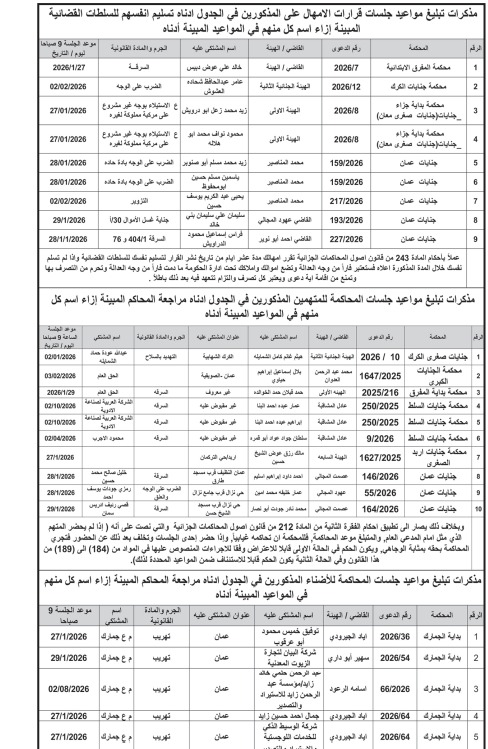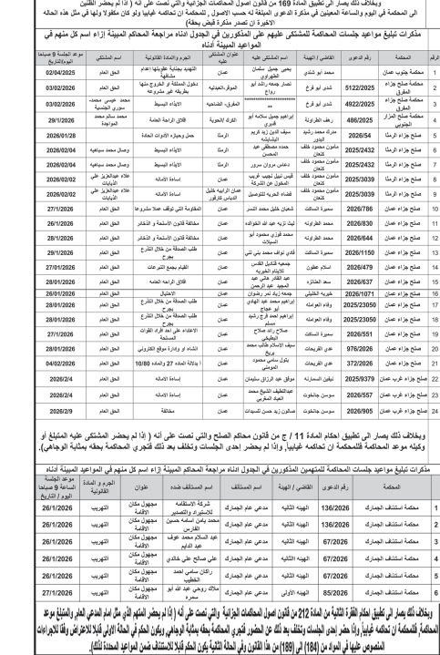 وكما صدرت مذكرات تبليغ، بمواعيد جلسات المحاكمة لمشتكى عليهم في المحاكم النظامية.