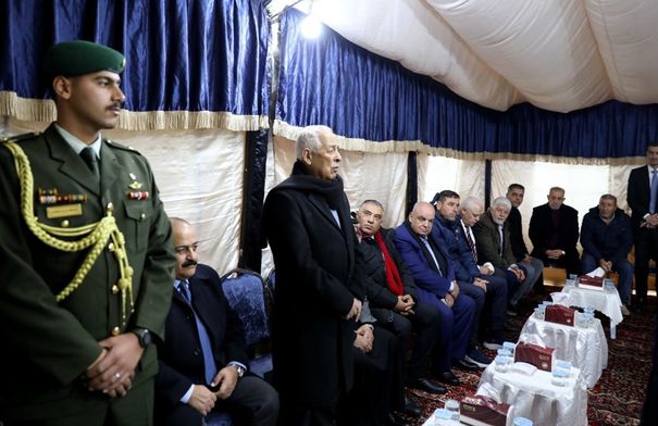 عمون - مندوبا عن جلالة الملك عبدالله الثاني، وسمو الأمير الحسين بن عبدالله الثاني، ولي العهد، قدّم رئيس الديوان الملكي الهاشمي يوسف العيسوي، واجب العزاء إلى عشائر الشوابكة والغويري والبلوش، ناقلا إليهم تعازي ومواساة جلالة الملك وسمو ولي العهد.
