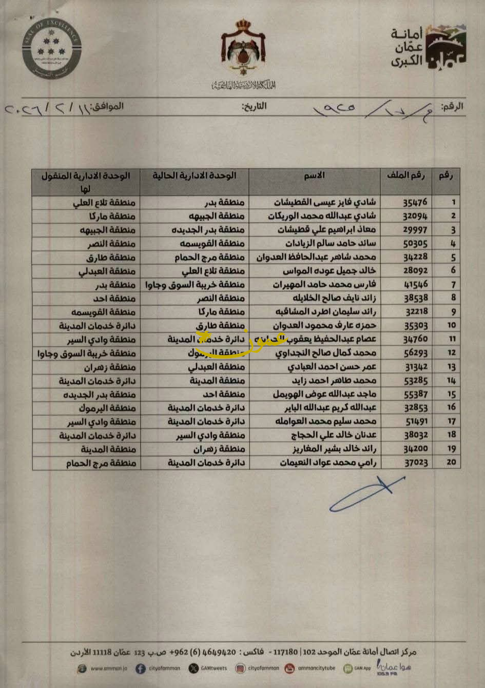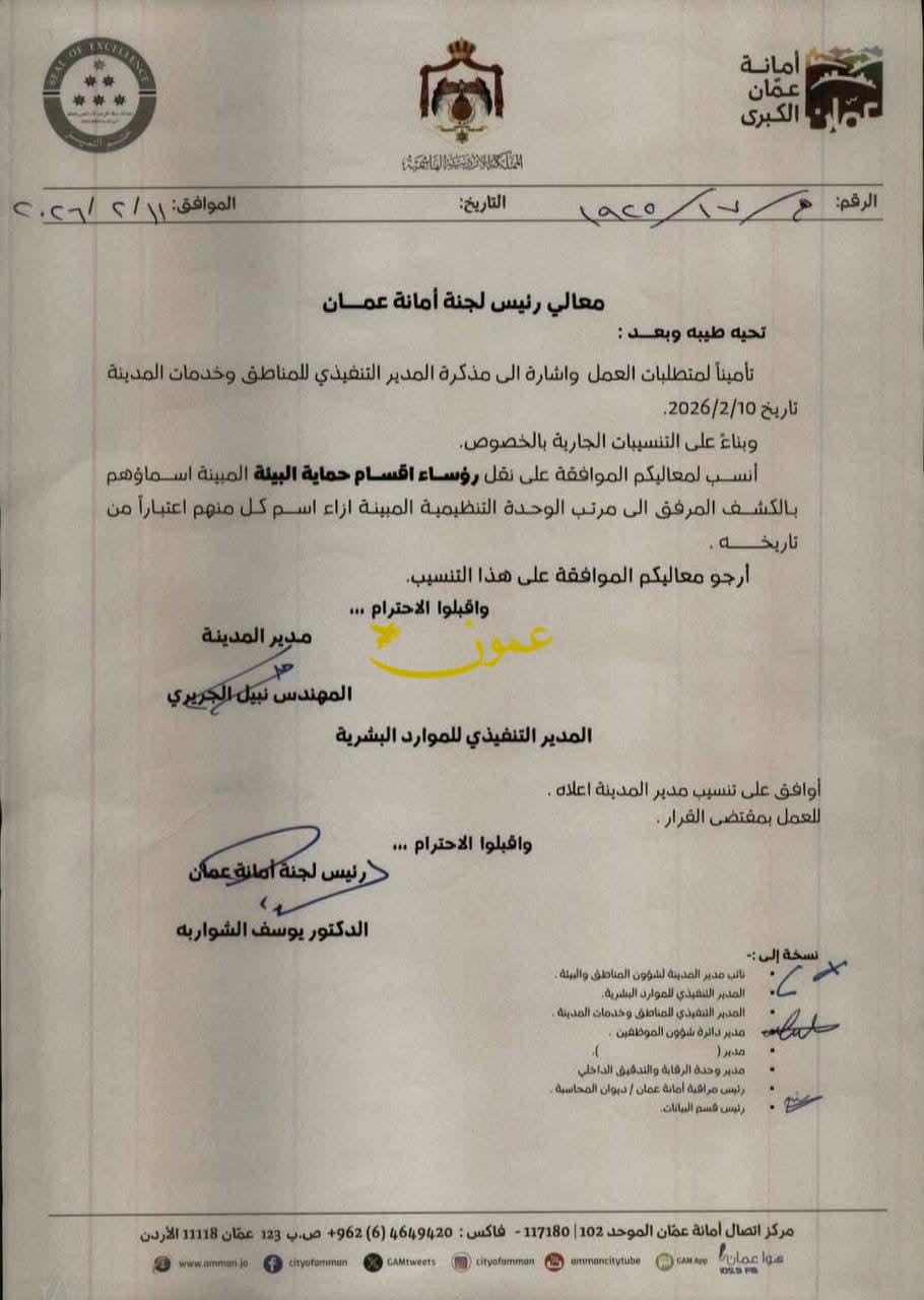 تشكيلات إدارية في أمانة عمان تشمل رؤساء أقسام (اسماء)