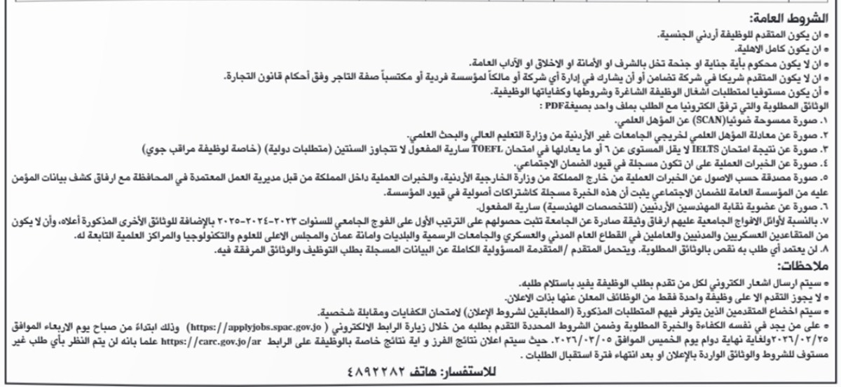 سرايا - اعلنت دوائر حكومية اليوم الاثنين عن حاجتها لتعبئة وظائف شاغرة وذلك ضمن الشروط والمواصفات المبية ازاء كل وظيفة مرفقة بالجدول.