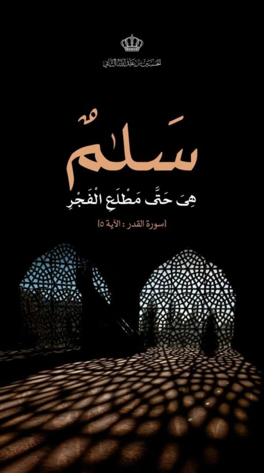وأرفق سموه الآية الكريمة: "سَلَامٌ هِيَ حَتَّىٰ مَطْلَعِ الْفَجْرِ".