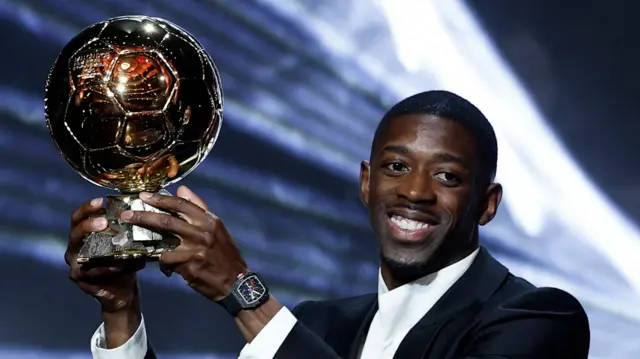 وتسلم ديمبيلي الكرة الذهبية من الأسطورة البرازيلية رونالدينيو، بعد موسم حافل أحرز فيه أربعة ألقاب مع فريقه الفرنسي.