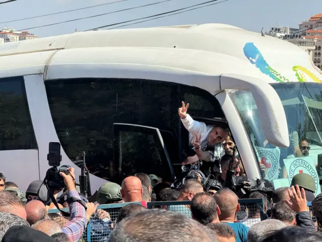 بمشاعر متناقضة بين الفرح والحزن، تجمعت عشرات العائلات الفلسطينية أمام قصر رام الله الثقافي في انتظار أبنائها الذين أفرجت عنهم السلطات الإسرائيلية ضمن صفقة تبادل الرهائن والسجناء والمعتقلين الأخيرة. استقبل مئات الفلسطينيين حافلات الصليب الأحمر التي تقل السجناء الفلسطينيين في رام الله وسط الضفة الغربية المحتلة.