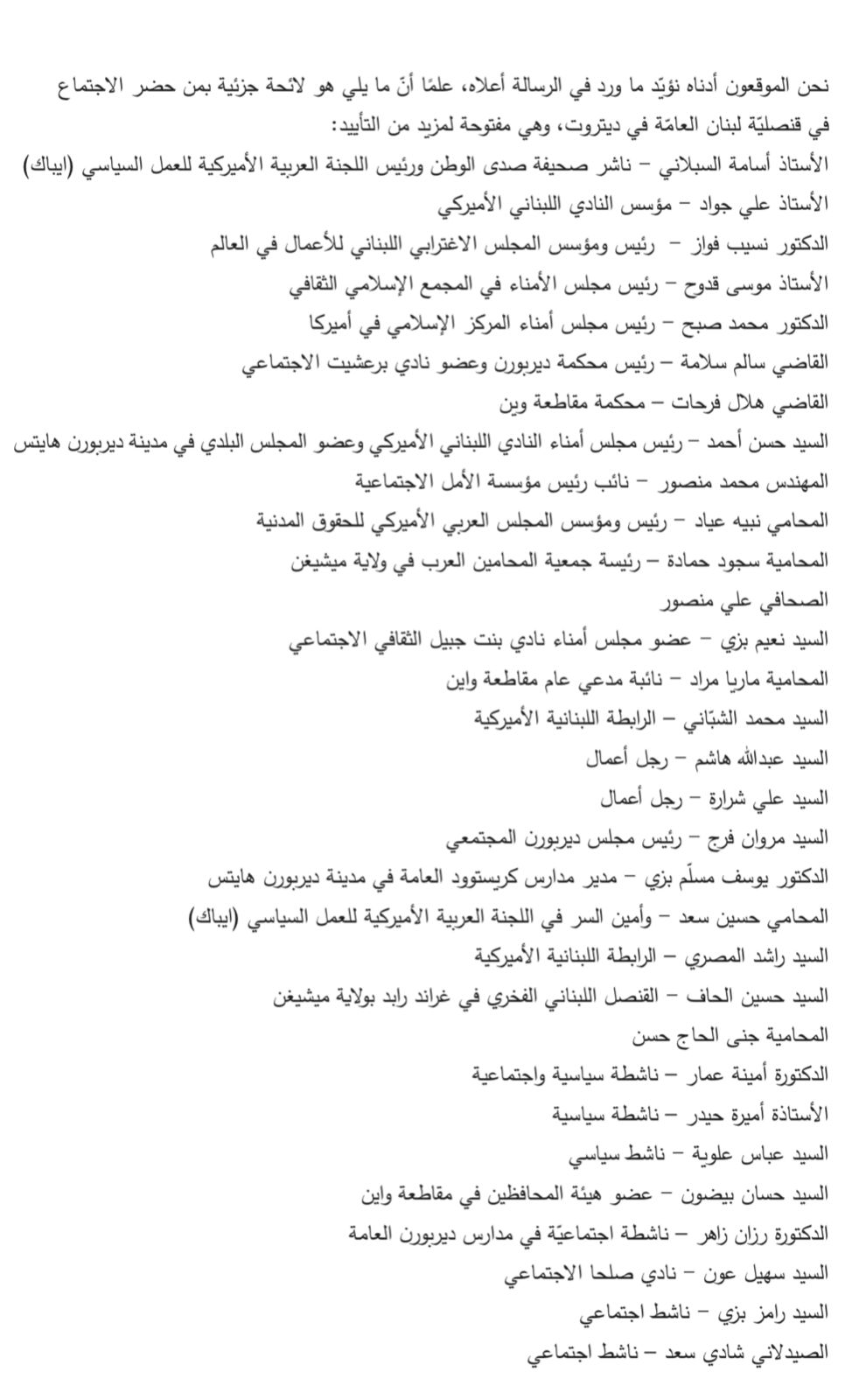 رسالة من الجالية اللبنانية في مشيغن الأميركية إلى الخارجية.. ماذا فيها؟