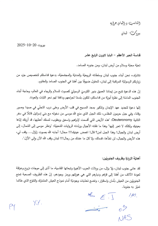 الإسرائيلي ، مشدداً على أن زيارة البابا لا يجب أن تقتصر على طابع رمزي، بل أن تتحول إلى فعل رسولي عملي يعبّر عن التضامن مع المتضررين ويعكس رسالة الأخوّة الإنسانية التي تحملها الكنيسة.