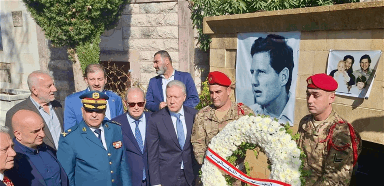 العماد جوزاف عون ، إكليلاً من الزهر الأبيض على ضريح الرئيس