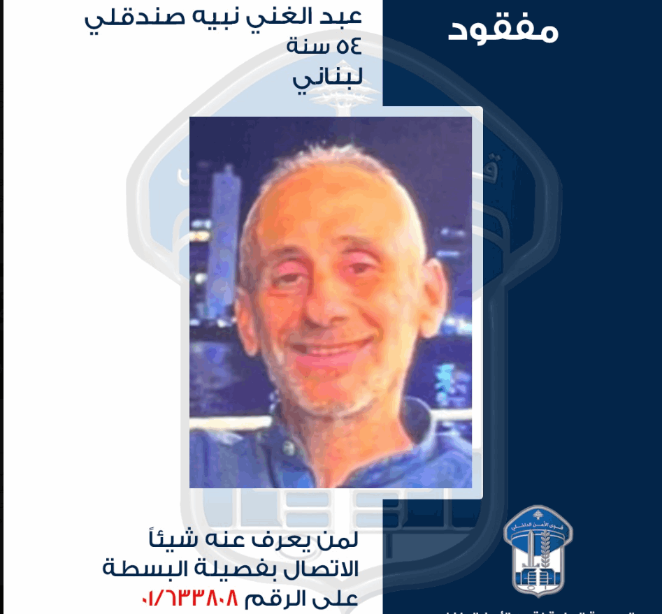 تُعمِّم المديريّة العامّة لقوى الأمن الدّاخلي، بناءً على إشارة القضاء المختص، صورة المفقود: