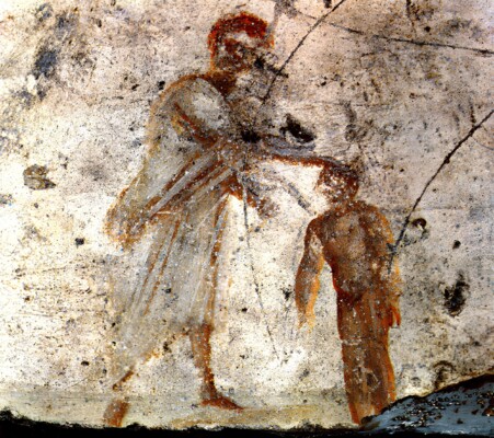 قد نلاحظ أنَّ الربَّ في جداريَّات القرون الأولى يبدو كشابٍّ، قصير الشعر وحليق الذقن. هكذا كان يصوَّر في وقتها، وبعدها أخذ الشكل النسكيَّ أي الشعر الطويل المتدلِّي على كتفيه والذقن الطويلة، وذلك ابتداء من القرن الرابع أو الخامس تقريبًا.