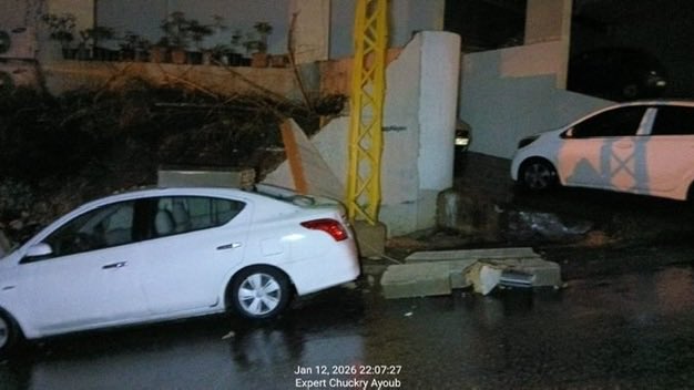 في الدكوانة.. حائط ينهارُ على سيارة! (صور)