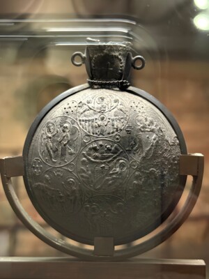 مصدر الصورة إلى جانب أنَّ القارورات كانت بمثابة بركة وتذكار، فهي لها أهمِّيَّة كبيرة بالنُقوش الَّتي كانت عليها، وهي نقوش تمثِّل أحداثًا خلاصيَّة من العهد الجديد، مثل البشارة، ولقاء والدة الإله بأليصابات، وبشارة الملاك للرعاة، وسجود المجوس للربِّ، والميلاد المجيد، والظهور الإلهيِّ، والصلب، ومجيء حاملات الطيب إلى القبر الفارغ، وظهور يسوع على التلاميذ، وتفتيش توما لجنب السيِّد، والصعود الإلهيِّ. هناك مشاهد مجموعة ضمن دوائر على قارورة واحدة وهناك قارورات منقوش عليها مشهدان، وقاروات أخرى عليها مشهد واحد.