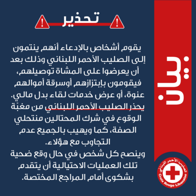 أشار الصليب الأحمر اللبناني إلى أنّ "أشخاصًا يقومون بالادّعاء أنّهم ينتمون إلى الصّليب الأحمر اللّبناني، وذلك بعد أن يَعرضوا على المشاة توصيلهم، فيقومون بابتزازهم أو سرقة أموالهم عنوةً، أو عرض خدمات لقاء بدل مالي".