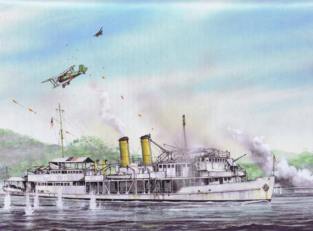 على الرغم من وضوح الرموز الأمريكية من كل الجهات، انطلقت القنابل نحو الهدف. كانت الأوامر الصادرة للطيارين اليابانيين غامضة وشاملة، مهاجمة "أي سفينة" في النهر فوق نانجينغ. أطلقت الطائرات ما مجموعه ثماني عشرة قنبلة، كل منها تحمل وزنا مدمرا يبلغ ستين كيلوغراما.
