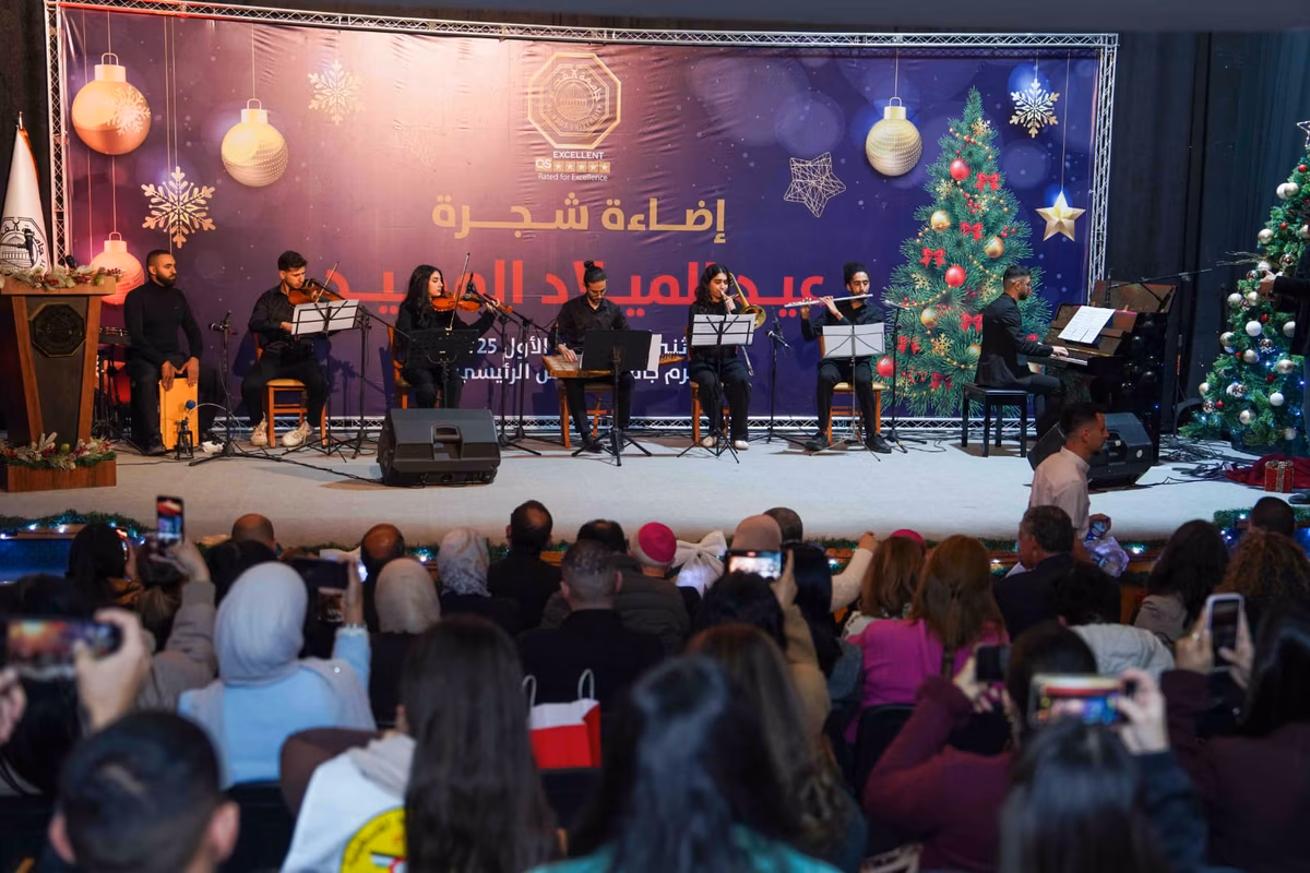 احتفلت جامعة القدس بإضاءة شجرة الميلاد إيذانًا بانطلاق احتفالات أعياد الميلاد المجيدة، وتجسيدًا لرسالة الجامعة في ترسيخ قيم الوحدة والمحبة والأمل، بمشاركة رجال دين وممثلين عن مؤسسات رسمية وأهلية، وموظفي وطلبة الجامعة، بتنظيم عمادة شؤون الطلبة والطلبة المسيحيين في الجامعة.