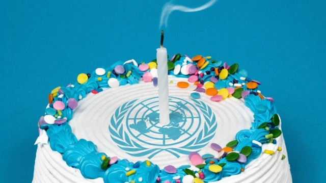 ولفتت الكاتبة إلى مرور 80 عاماً بالتمام اليوم، الـ 24 من أكتوبر/تشرين الأول، على دخول ميثاق الأمم المتحدة حيّز التنفيذ؛ غير أن المنظمة الأممية إذْ تحتفل بعيد ميلادها فإنها تمرّ بأزمة داخلية – "حيث التصادم والمصلحة الخاصة تعلو على السطح في ما بين أعضاء أُسرة أمميّة مُفككة وغير فعّالة؛ وحيث نشوب حرب عالمية يُعدّ خطراً محدقاً؛ وحيث الدول التي تمتلك سلاحاً نووياً تهدّد علانية باستخدامه؛ وحيث تغيُّر المناخ يترك أجزاءً من عالمنا غير مُحتمَلة".