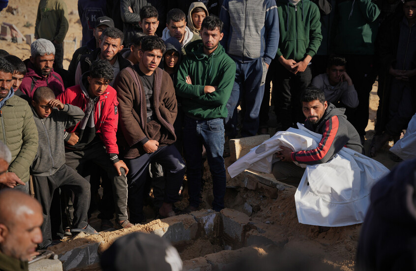 مراسم دفن طفل قتل في غارة إسرائيليةعلى خان يونس في قطاع غزة يوم السبت. / AP