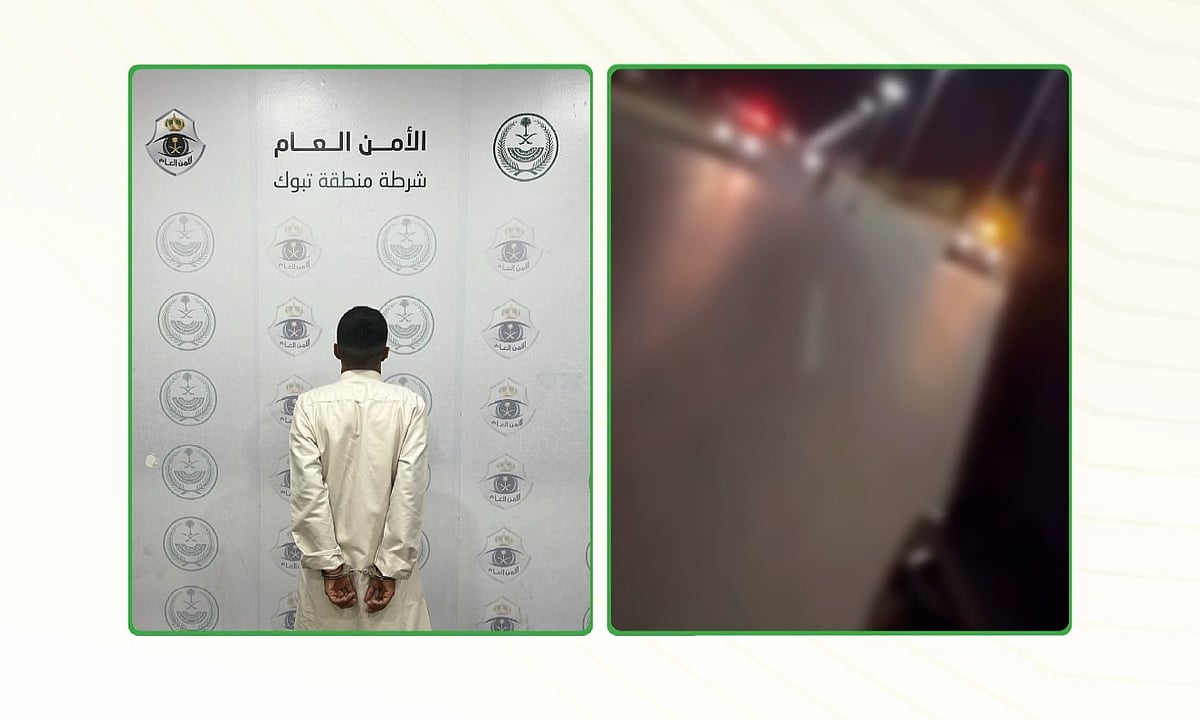قبض مرور منطقة تبوك على مواطن؛ لمحاولته الهرب من نقطة أمنية، وتوثيق ذلك في محتوى مرئي ونشره.
