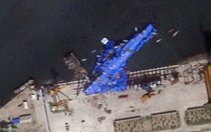 كشفت صور التقطت من الأقمار الاصطناعية عن أضرار لحقت بسفينة حربية كورية شمالية لحظة تدشينها، في حادث أثار غضب زعيم البلاد كيم جونغ أون.