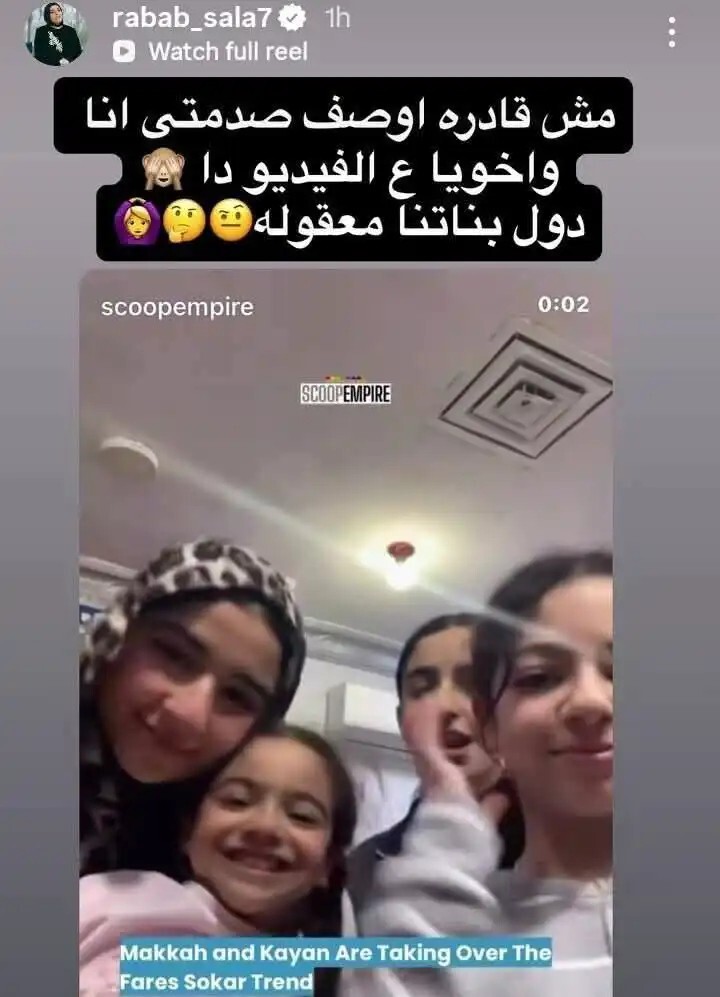 وظهرت مكة وكيان ابنتا محمد صلاح في هذا المقطع وهما تؤديان حركات راقصة على أنغام إحدى الأغنيات الشعبية المصرية برفقة بنات عمتهما رباب صلاح مما أثار موجة عارمة من التعليقات والردود عبر مختلف منصات التواصل الاجتماعي التي تداولت الفيديو بكثافة.