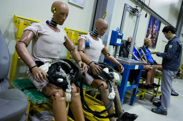 أما في الوقت الراهن، فتشمل اختبارات التصادم دمى متطورة تخضع باستمرار لتعديلات في التصميم، وتستعين بتقنيات الذكاء الاصطناعي، وأجهزة استشعار دقيقة، ونمذجة حاسوبية تحاكي سيناريوهات واقعية لإجراء تحليل شامل لمستويات السلامة.