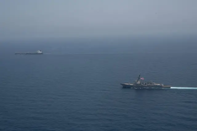 وأوضحت أن عملية الاعتراض جرت في بحر العرب بواسطة مروحية تابعة للبحرية الأمريكية انطلقت من المدمرة "يو إس إس بينكني"، مشيرة إلى أن السفينة "تلتزم حالياً بتوجيهات القوات الأمريكية بالعودة إلى إيران تحت المرافقة".