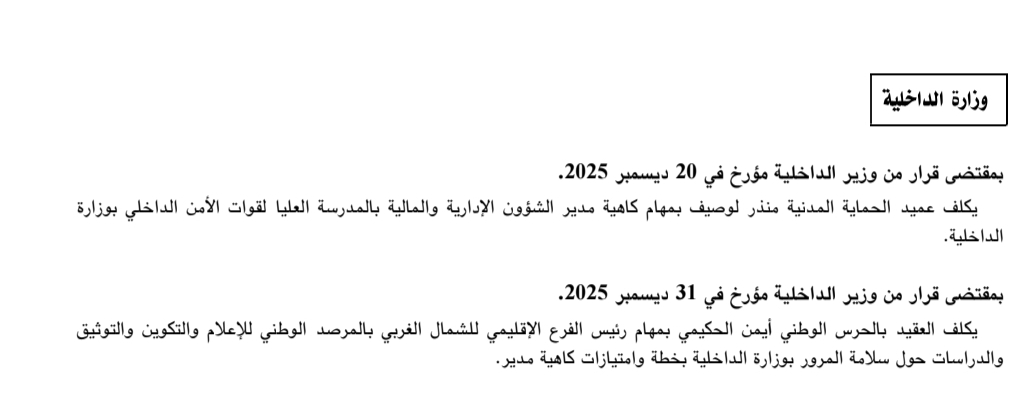 صدر بمقتضى قرار من وزير الداخلية مؤرخ في 20 و31 ديسمبر 2025 ورد بالعدد الاخير للرائد الرسمي للجمهورية التونسية بتاريخ 23 جانفي 2026 تسميات جديدة صلب سلك الحرس والأمن الوطنيين وفي ما يلي التفاصيل..