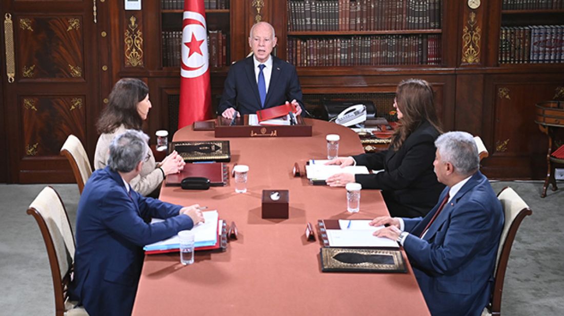 وذلك لدى إشرافه عصر يوم الاثنين، بقصر قرطاج، على اجتماع ضمّ كلاّ من رئيسة الحكومة سارة الزعفراني الزنزري و وزيرة الماليّة مشكاة سلامة الخالدي ووزير الشّؤون الاجتماعية عصام الأحمر و وزير التّشغيل والتّكوين المهني رياض شوّد وفق بلاغ للرئاسة صادر اليوم الثلاثاء .