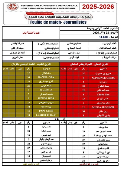يواجه النجم الساحلي اليوم االاتحاد الرياضي ببنقردان بداية من الساعة 14:00 في الملعب الأولمبي بسوسة في اطار الجولة الثالثة إياب من البطولة.