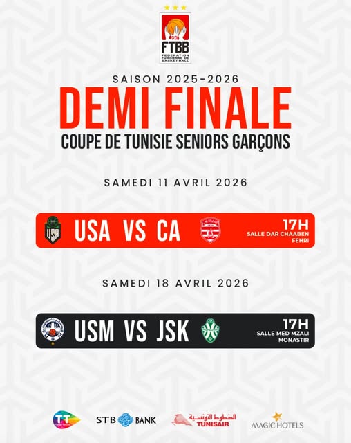 أعلنت الجامعة التونسية لكرة السلة عبر صفحتها الرسمية عن إلغاء المباراة الثالثة من أجل المركز الثالث في البطولة والتي كان من المقرر إجراءها غدا الأربعاء 8 أفريل 2026 بين النادي الإفريقي والنجم الساحلي. وفي المقابل نشرت الصفحة الرسمية للجامعة مواعيد نصف نهائي كأس تونس.
