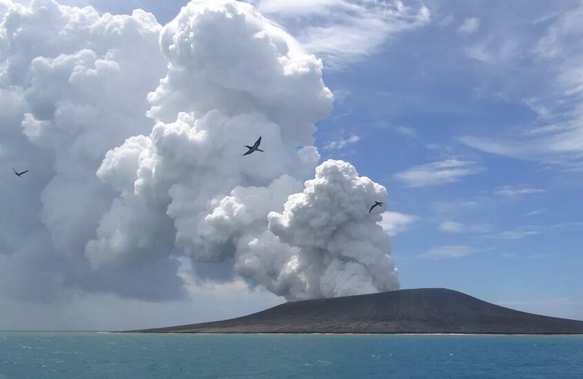 البركان تسببت في شتاء استثنائي في نصف الكرة الأرضية الشمالي. انتشر في الغلاف الجوي 150 كيلو مترا مكعبا من الرماد البركاني، وارتفع عمود الرماد البركاني لمسافة 40 كيلو مترا. المواد البركانية التي حملتها الرياح في طبقة "ستراتوسفير"، حدّت من كمية أشعة الشمس التي تصل الأرض في الظروف العادية.
