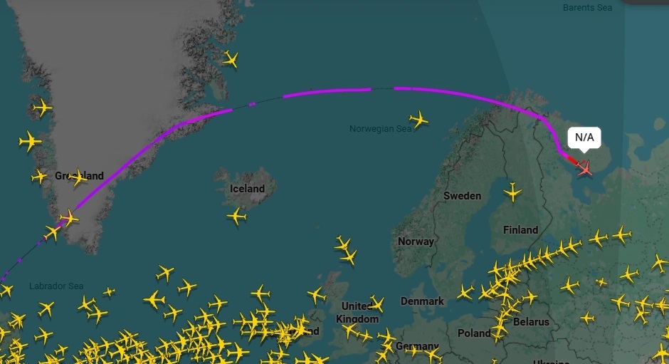 وحسب بيانات "فلايت رادار"، فقد توقف تتبع مسار الطائرة فوق مدينة كوتلاس في منطقة أرخانغيلسك الروسية المجاورة لمورمانسك.
