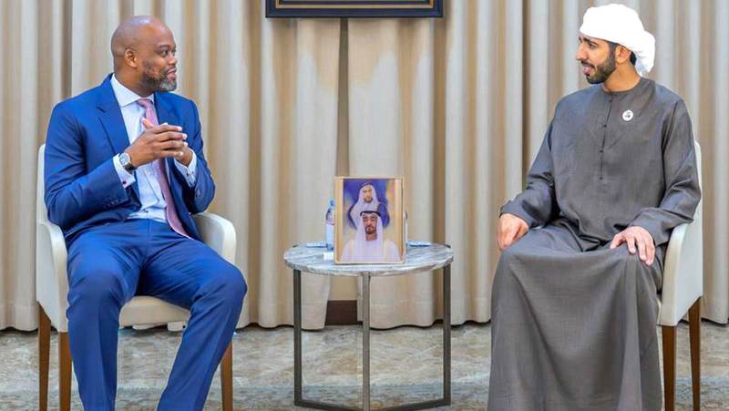 حضر اللقاء، سمو الشيخ خالد بن محمد بن زايد آل نهيان ولي عهد أبوظبي وعلي بن حماد الشامسي الأمين العام للمجلس الأعلى للأمن الوطني.
