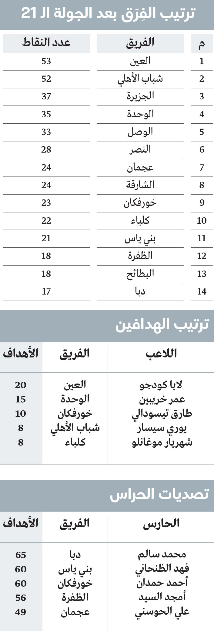 وبين هذا الثبات والاشتعال، انحصرت المنافسة على اللقب حسابياً وواقعياً بين العين وشباب الأهلي فقط، لتدخل البطولة مرحلتها الحاسمة بصراع ثنائي في القمة، وفوضى تنافسية في القاع.. «الإمارات اليوم» ترصد أبرز مشاهد الجولة الـ21 على النحو التالي: