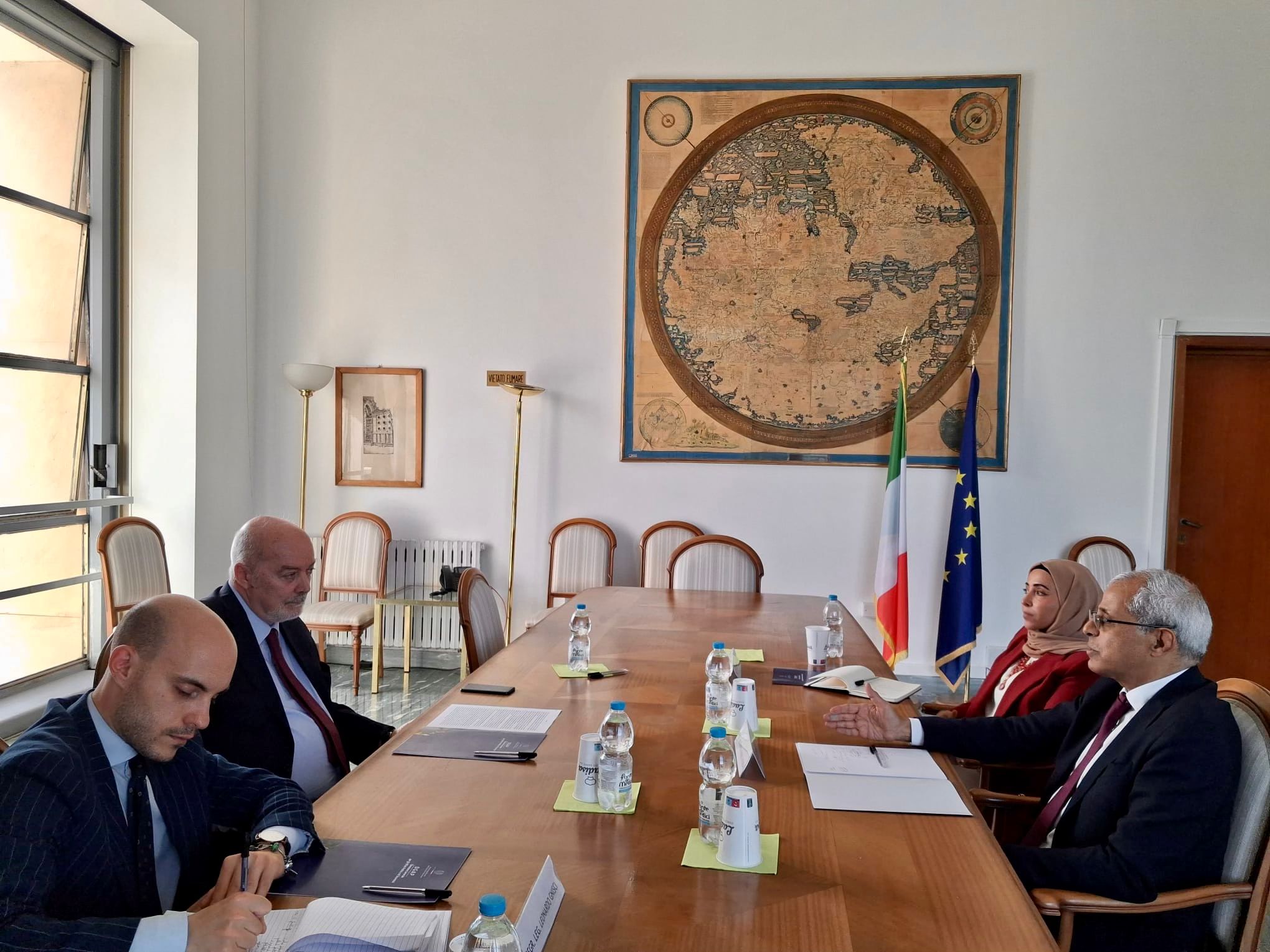 حضرت اللقاء سفيرة بلادنا لدى إيطاليا اسمهان الطوقي، والمختص في الادارة العامة لدول الخليج واليمن بوزارة الخارجية الايطالية وليوناردو نيشي.